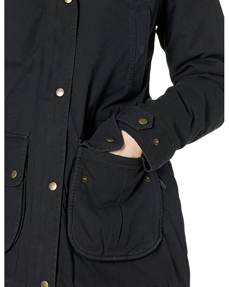 - Two-way zipper with snap storm placket.