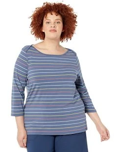 - Stay comfy and relaxed wearing the stretchable L.L.Bean⢠Plus Size Soft Stretch Supima Boatneck 3/4 Sleeve Stripe Top.