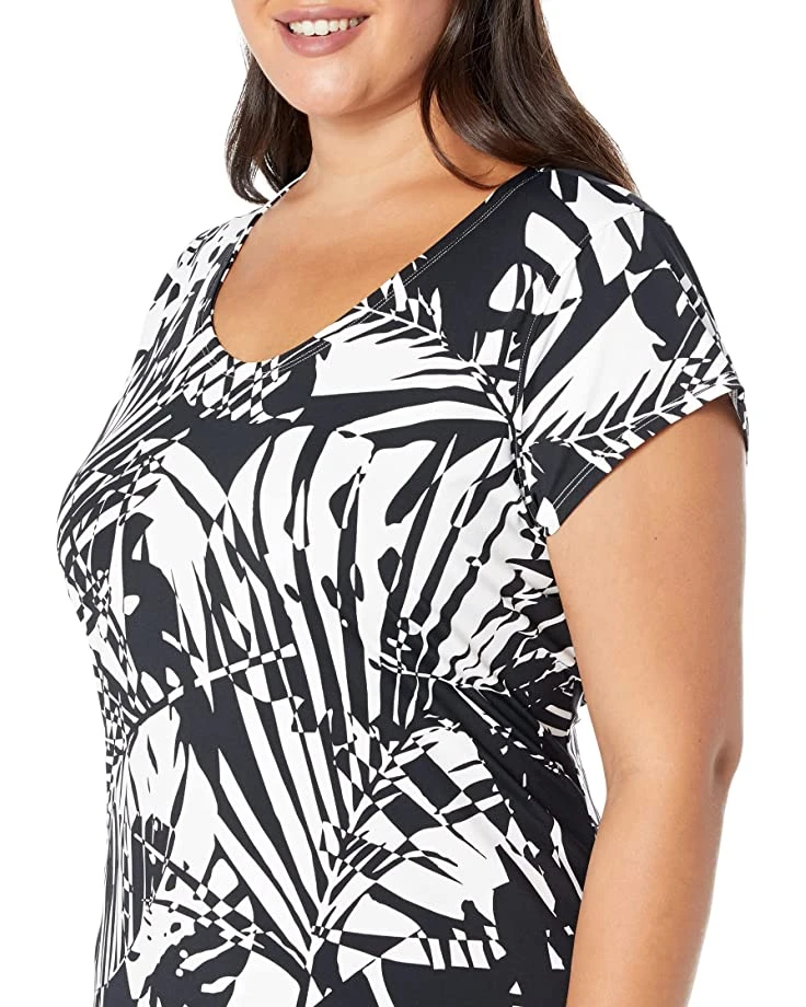 A striking cover-up with the black and white design. Comfortable. Will be so handy for beach and cruise time coming up.